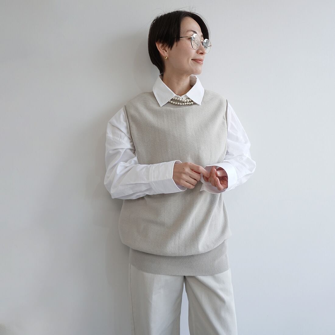 ニットのクルーネックベスト。