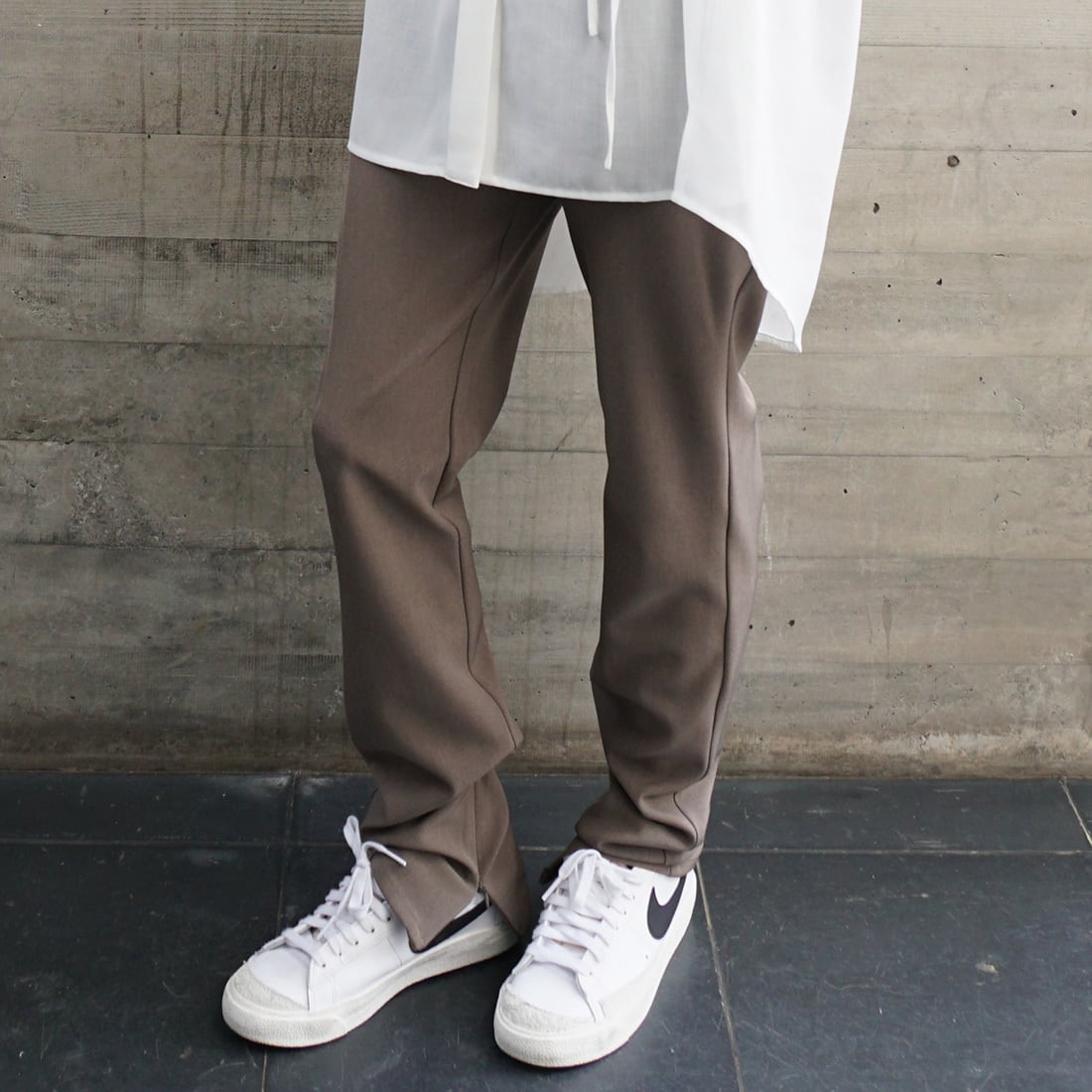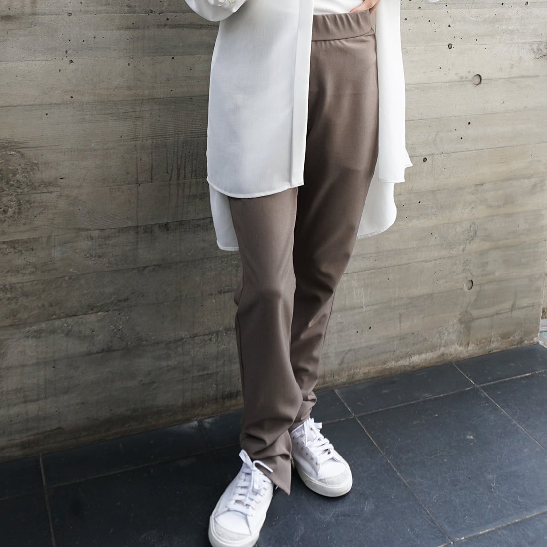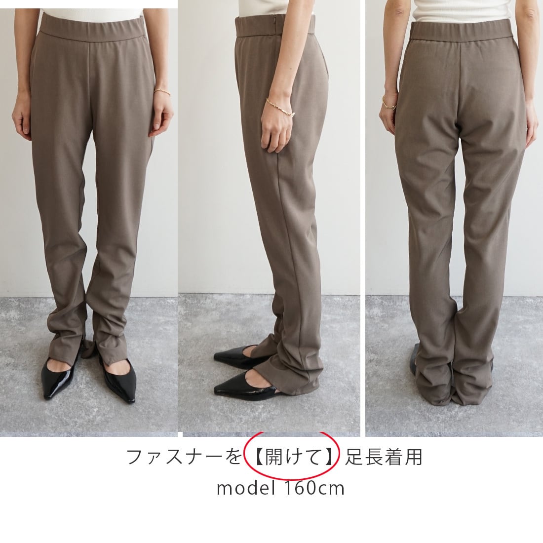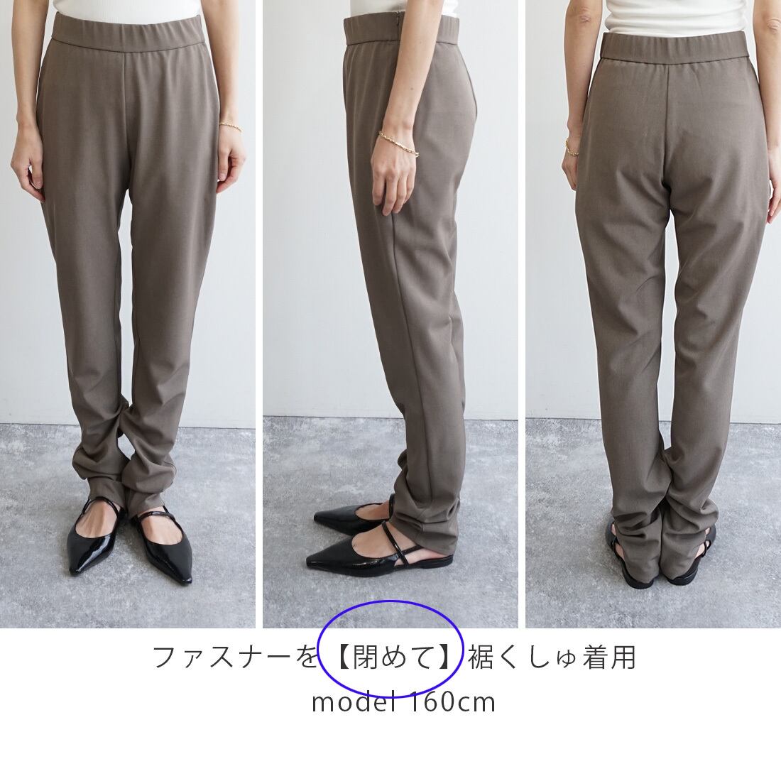 「スリム裾ファスナーパンツ」