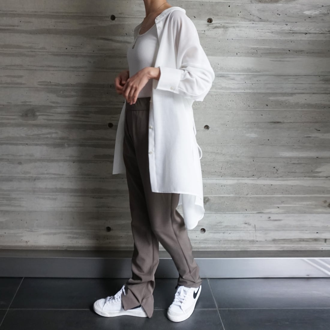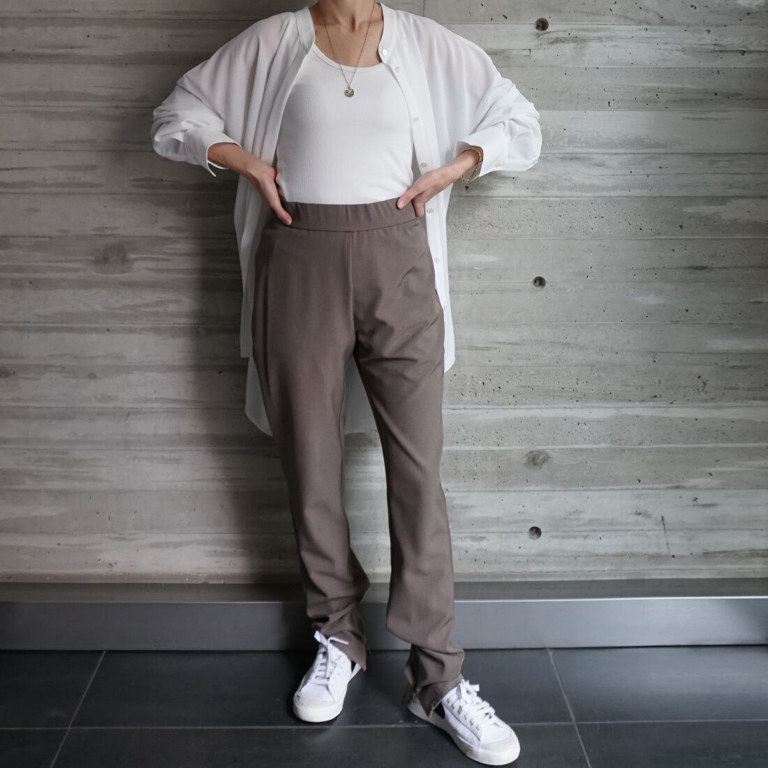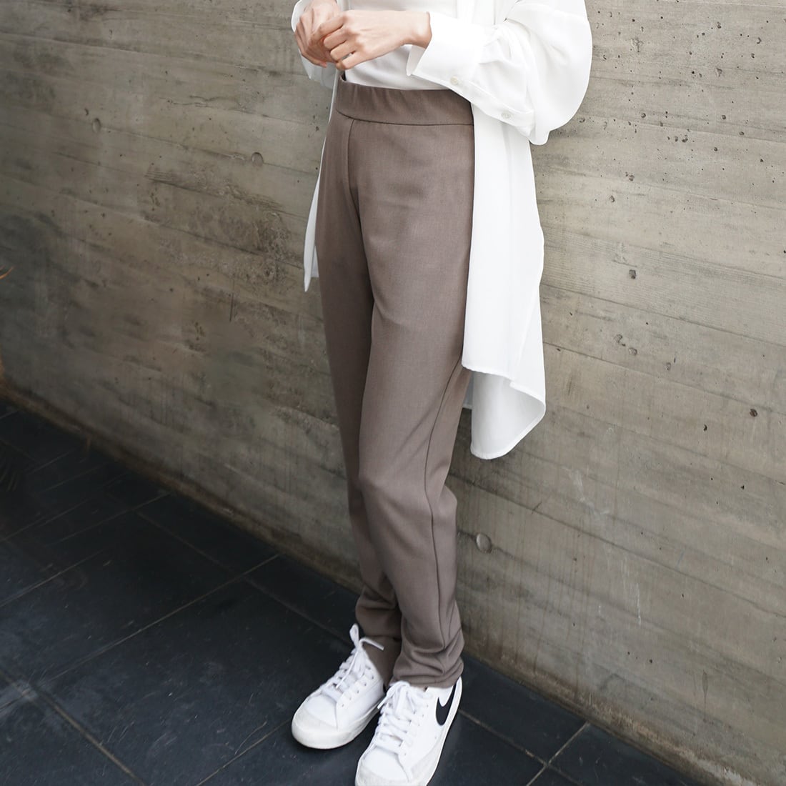 こなれ見えのスリムパンツ。