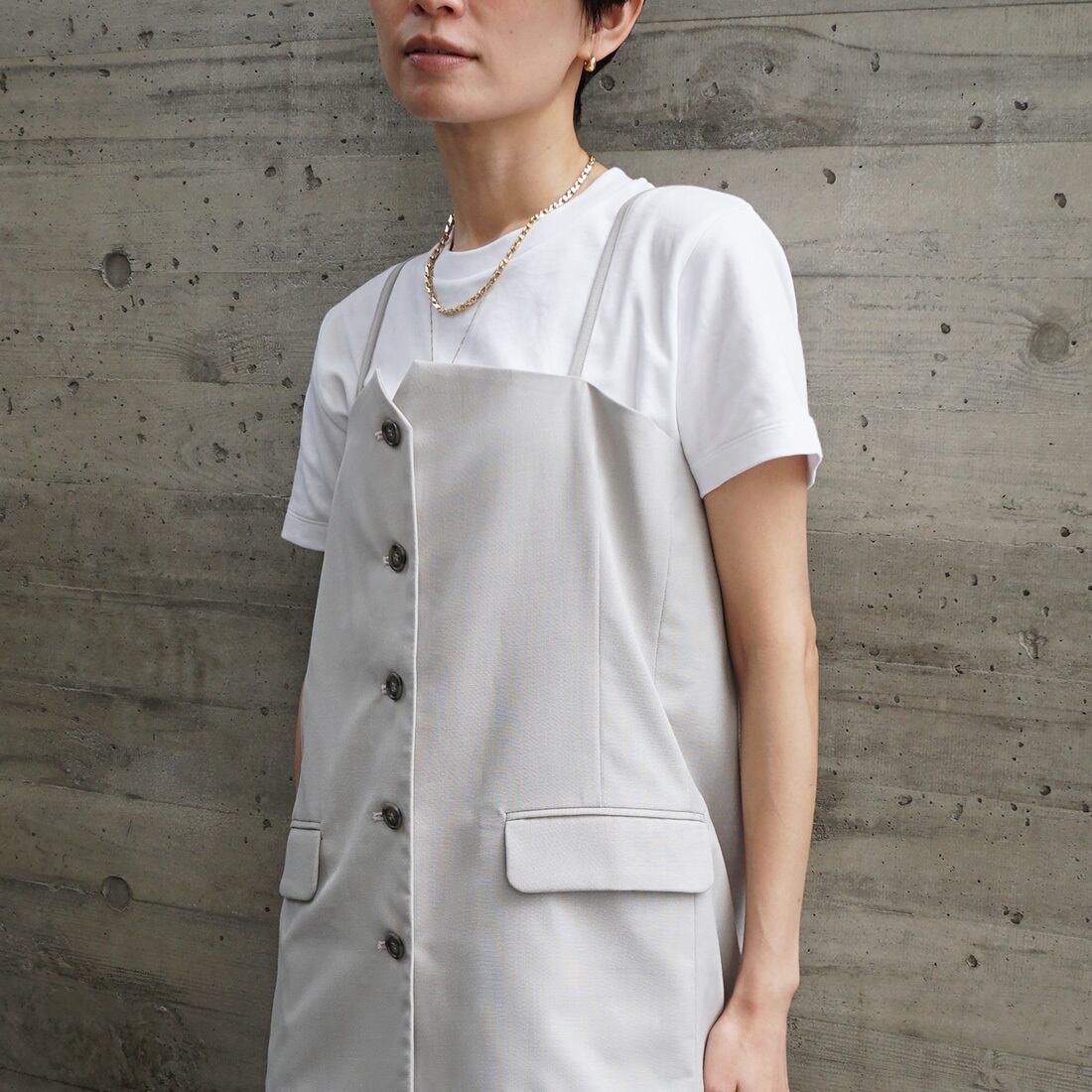 キャミ風デザインのベストは、