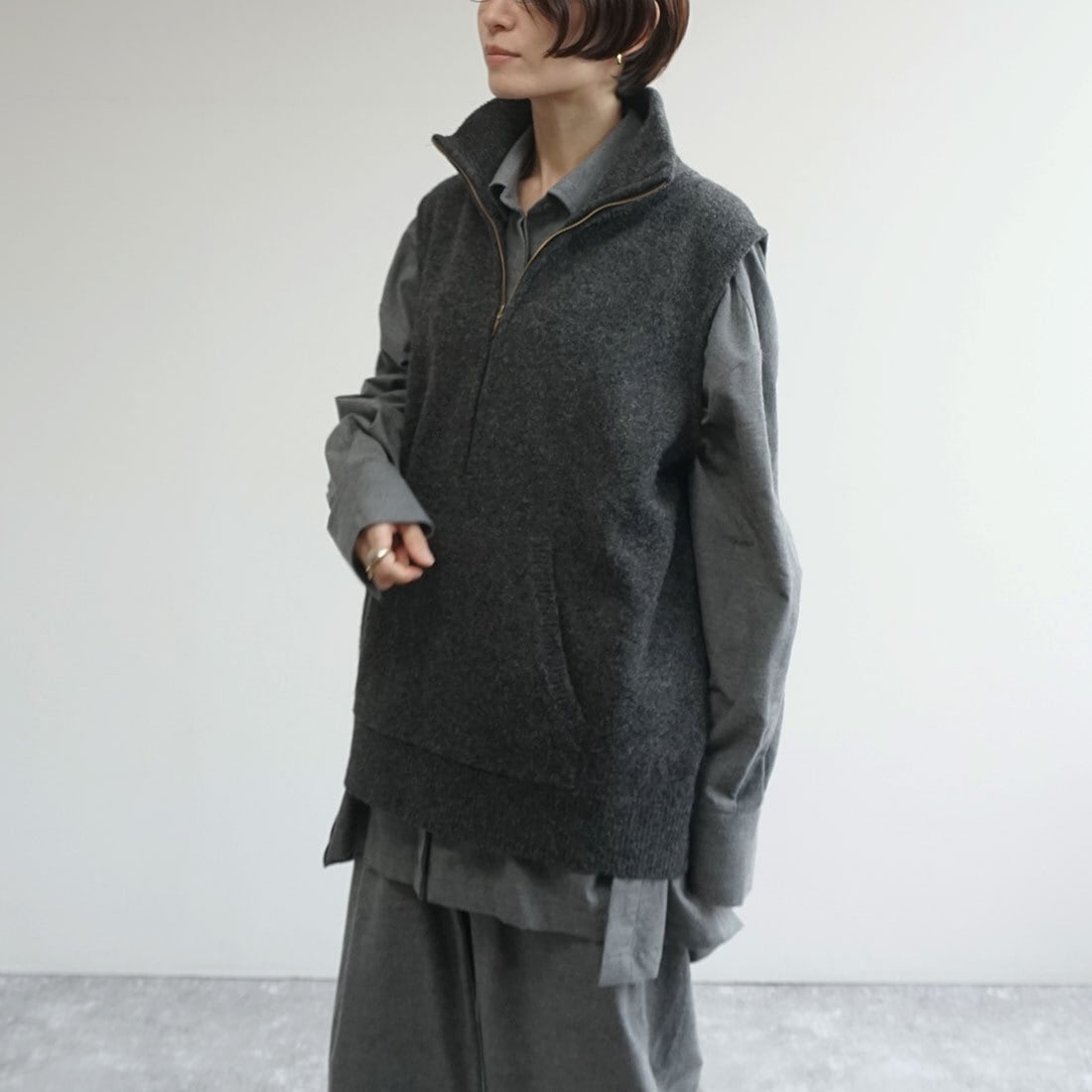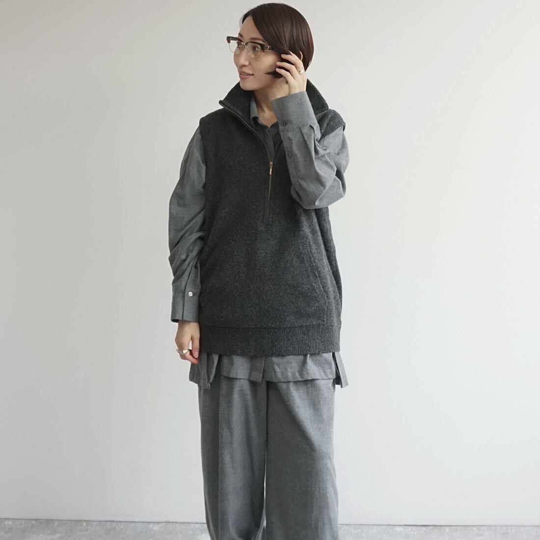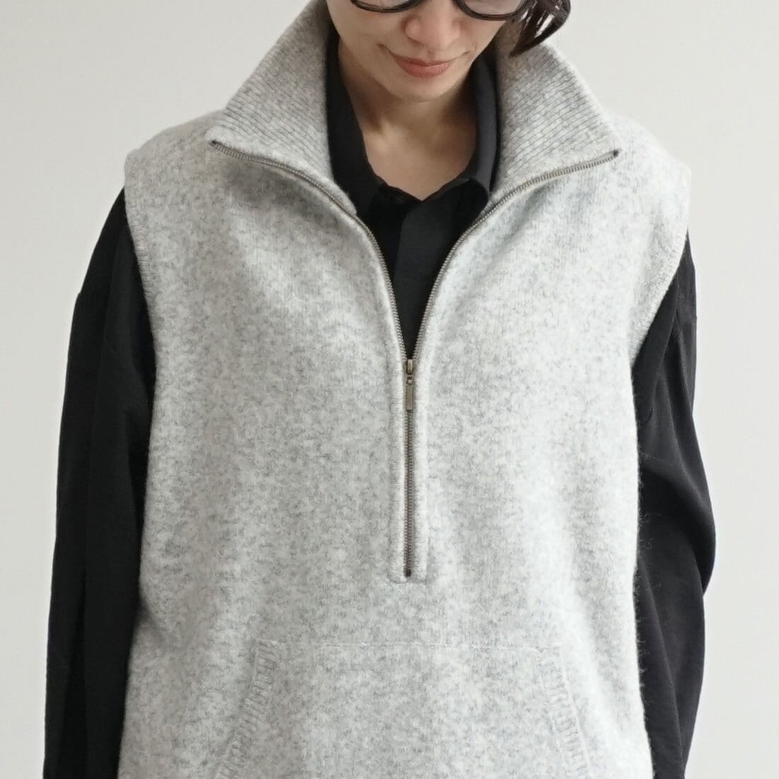 肩のこらない着心地のハーフジップベスト。