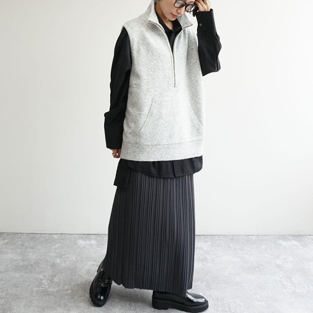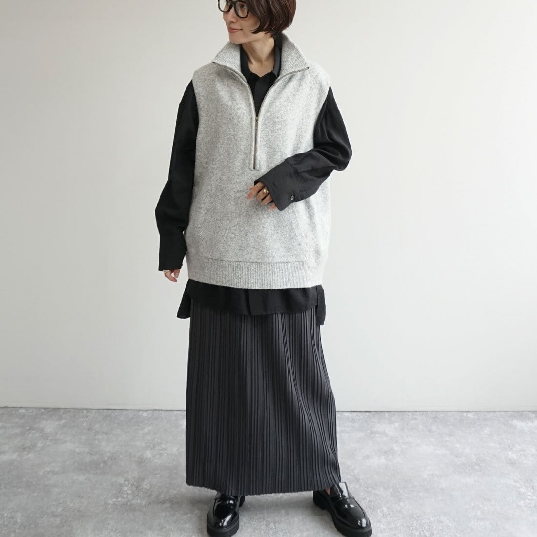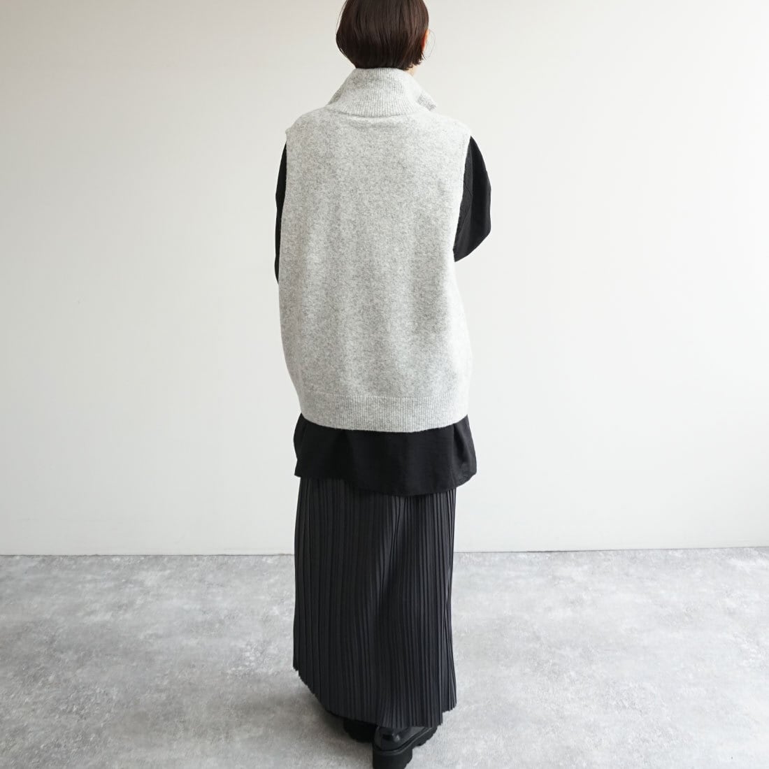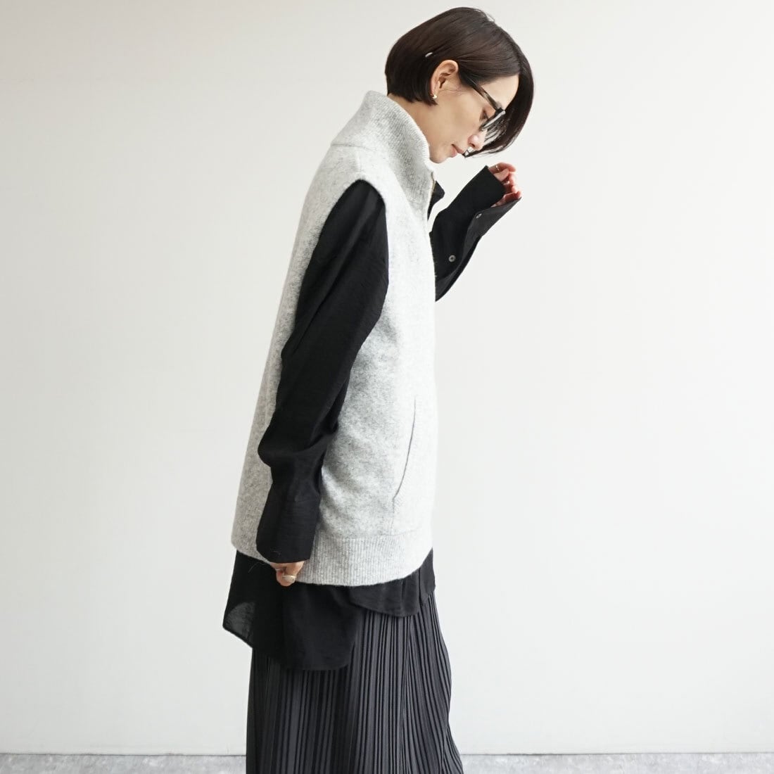 肩のこらない着心地のハーフジップベスト。
