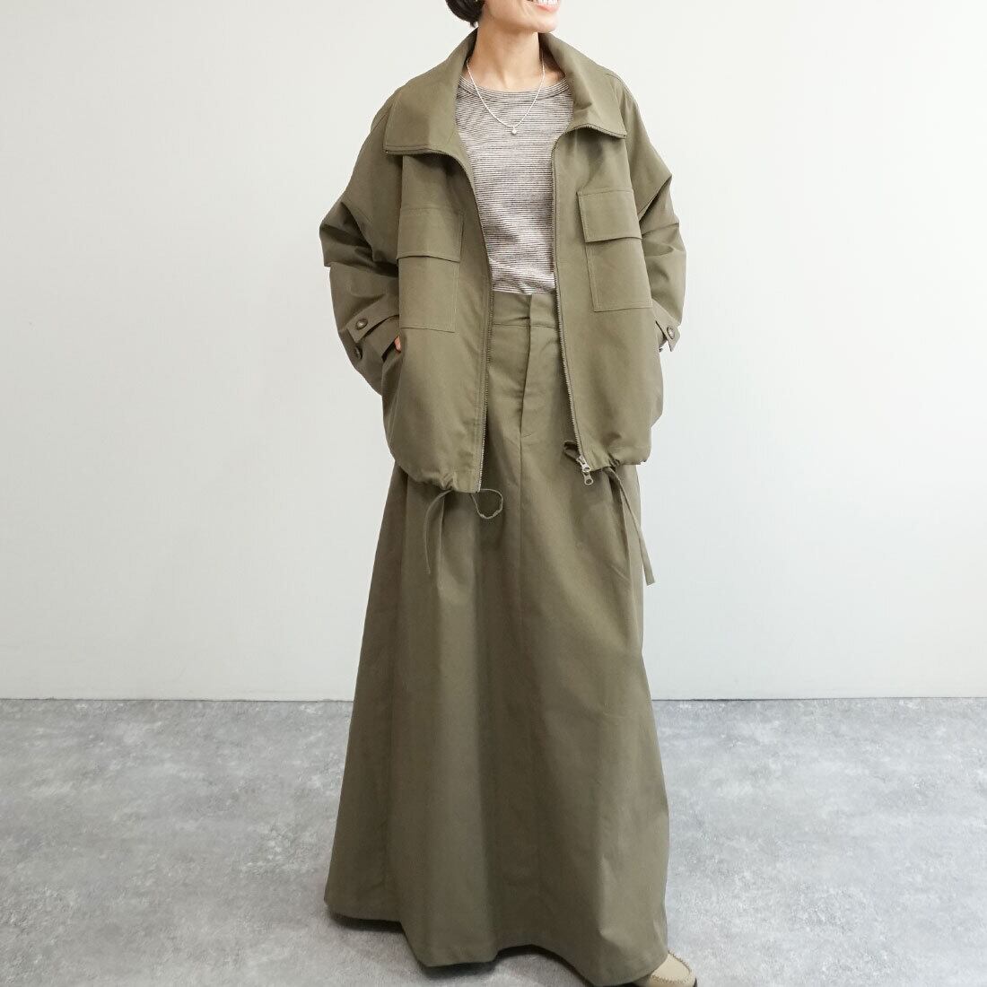 裾はドローストリング仕様で、絞ること