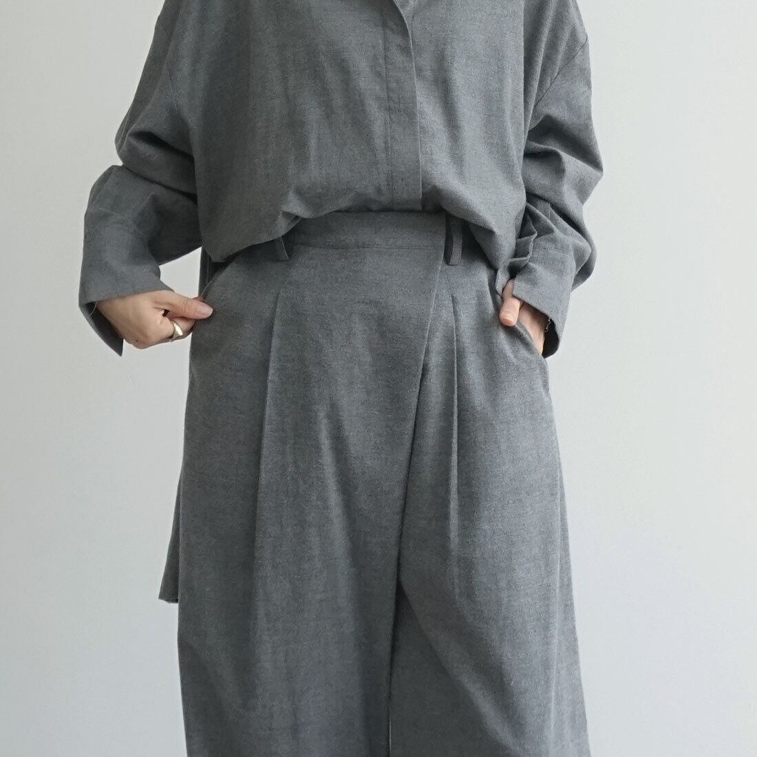 同素材のブラウスと合わせて、力の抜けた印象に。