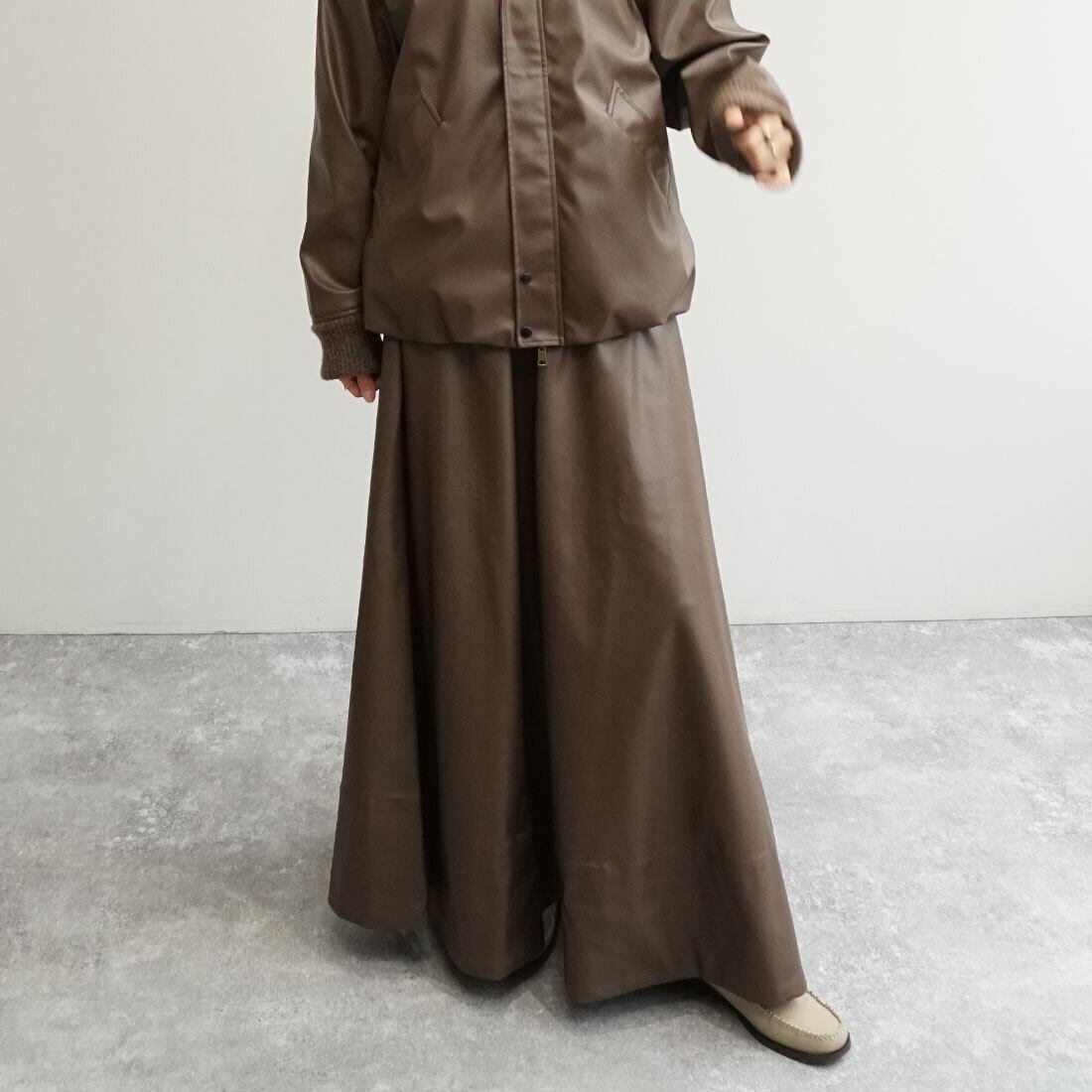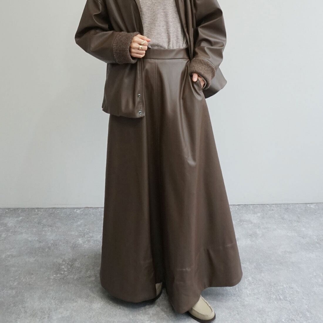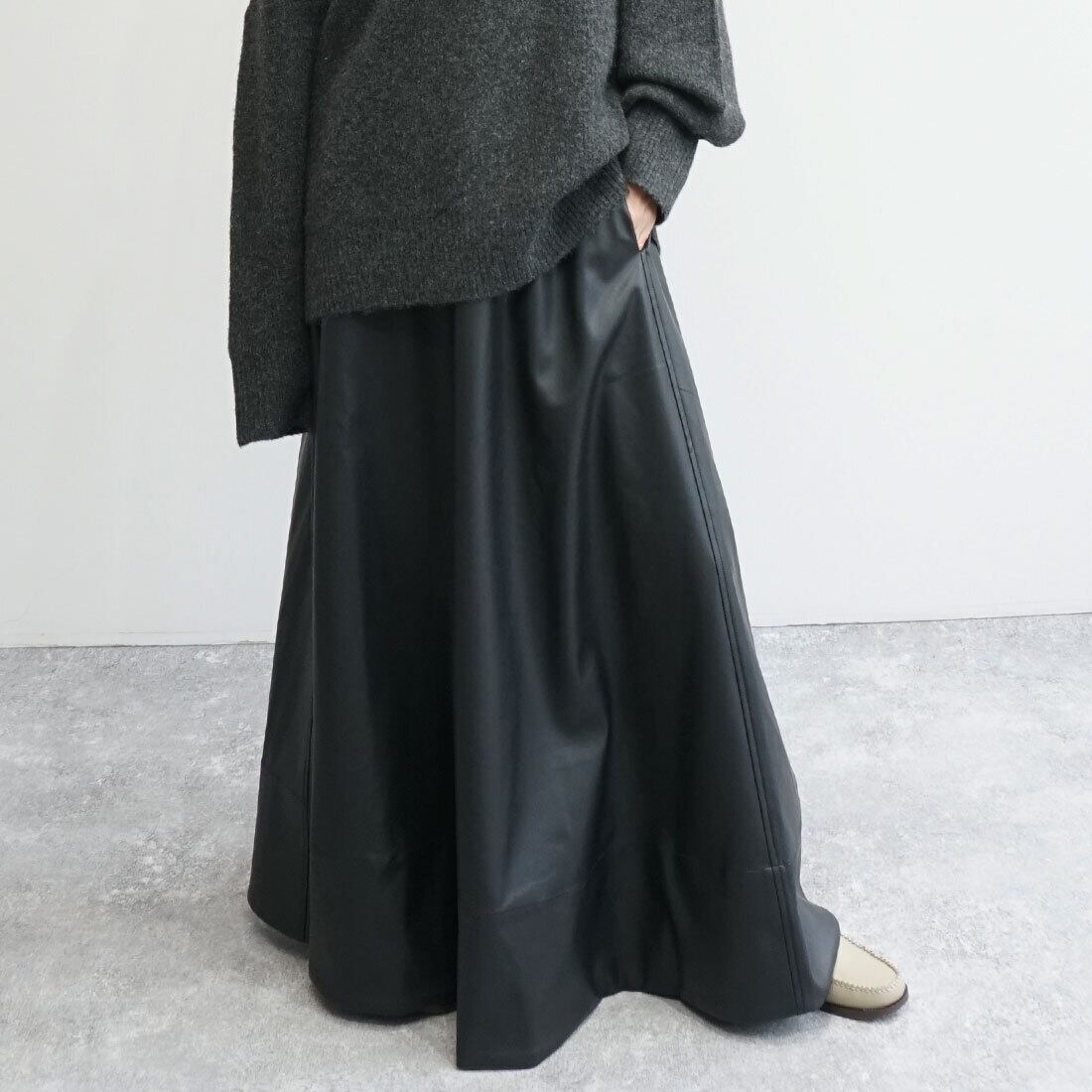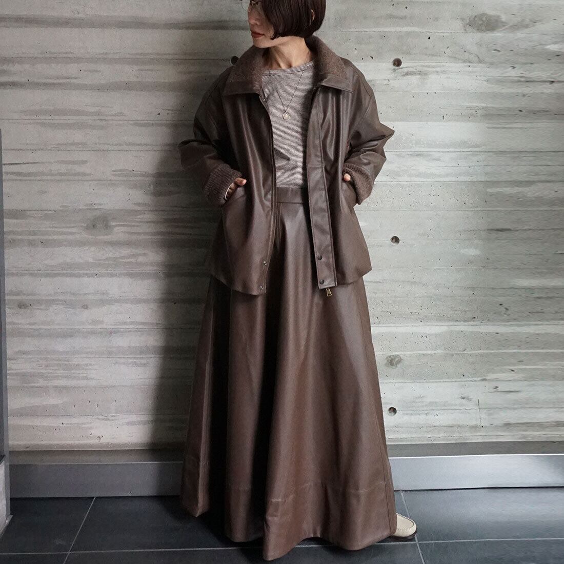 「レザーライクフレアスカート」