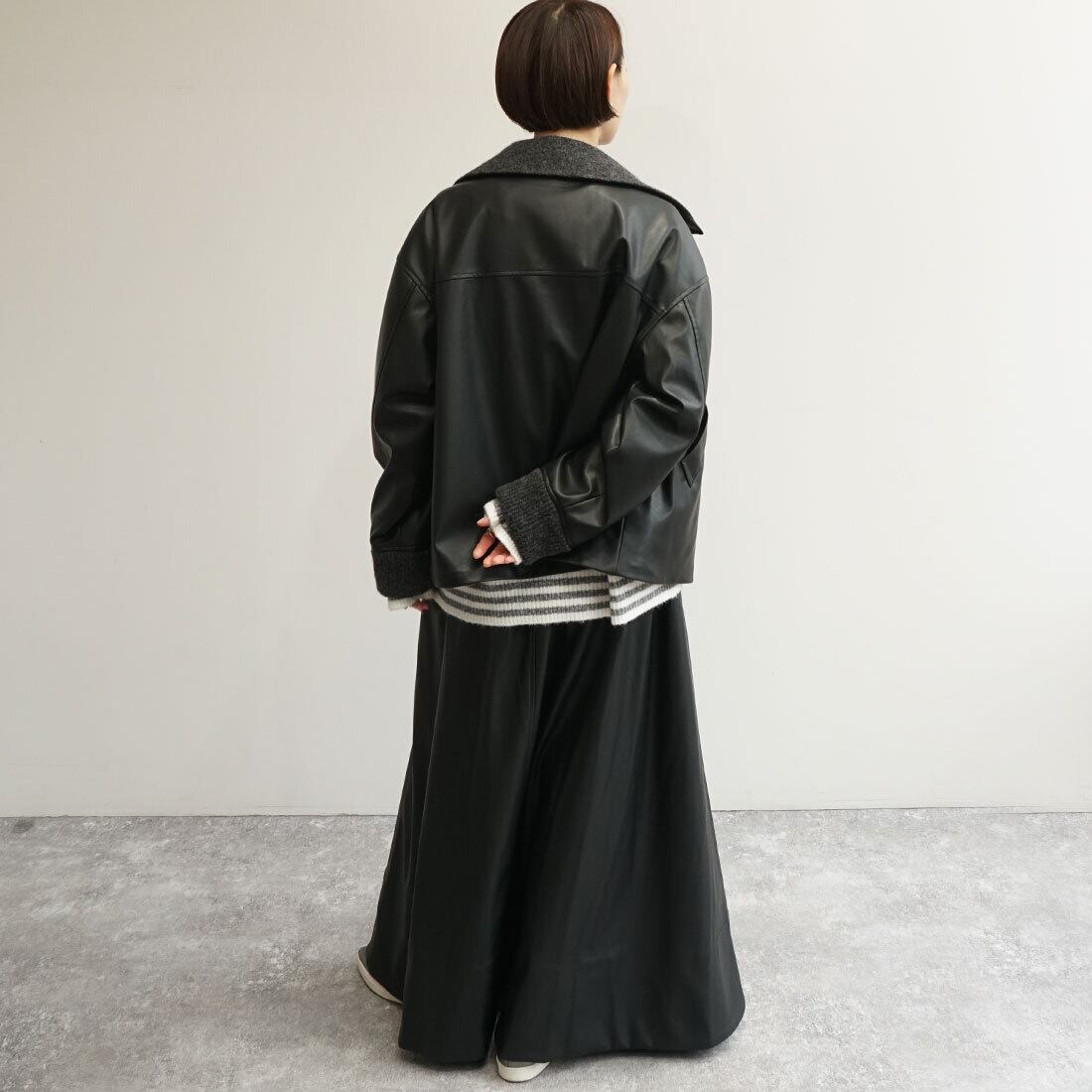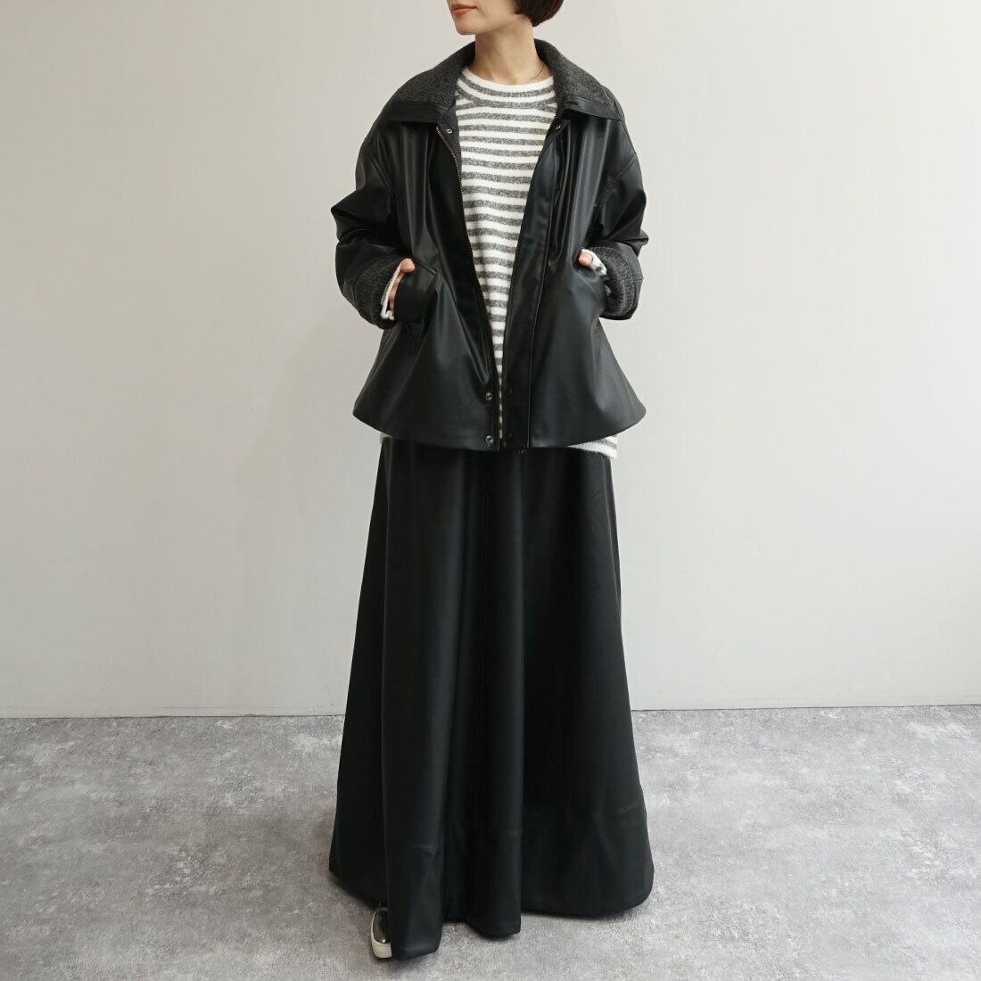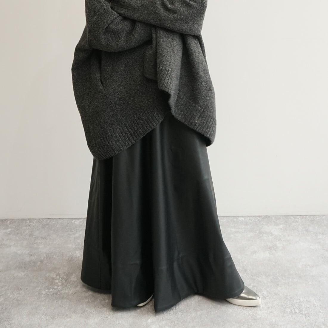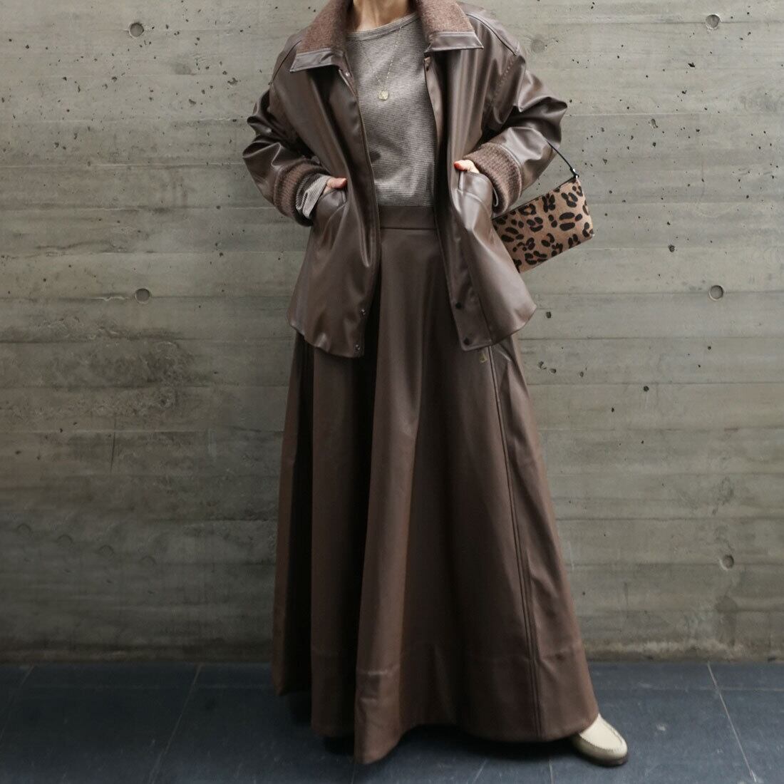 「レザーライクフレアスカート」