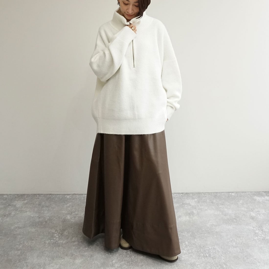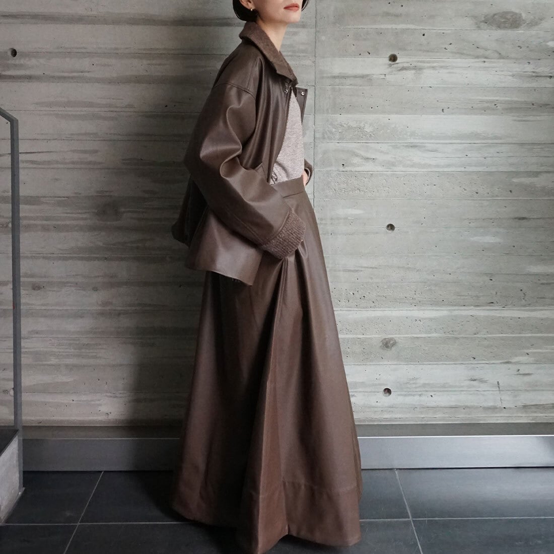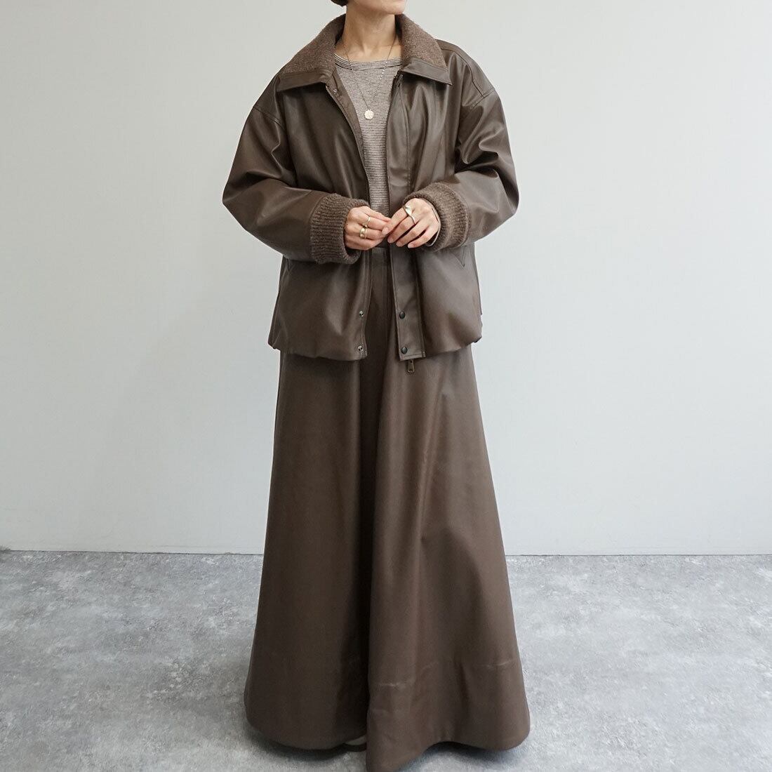 同素材ブルゾンとのセットアップも。