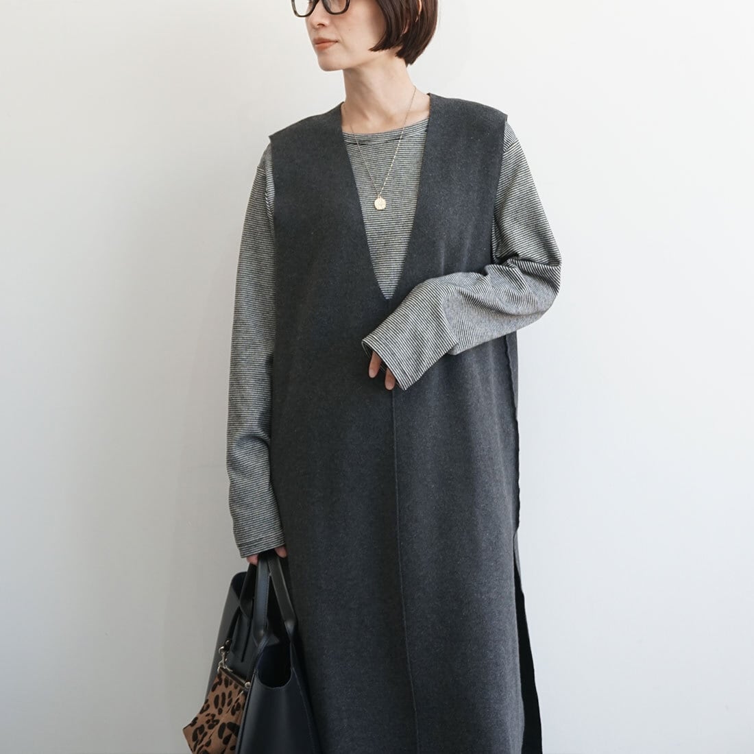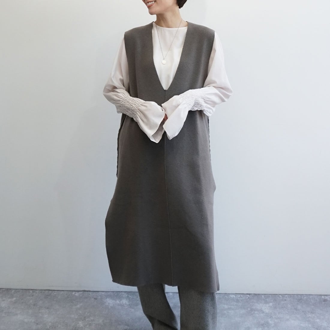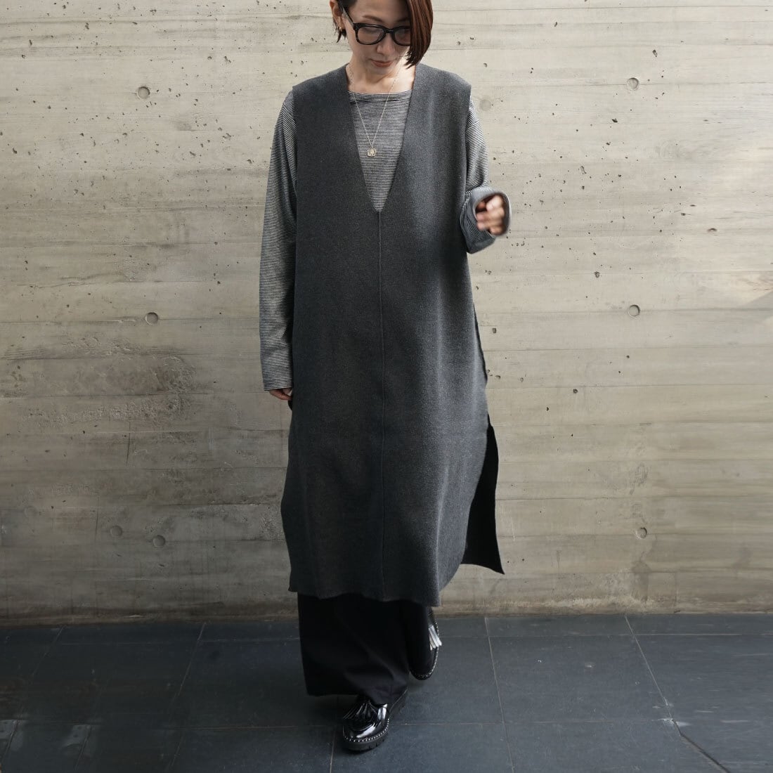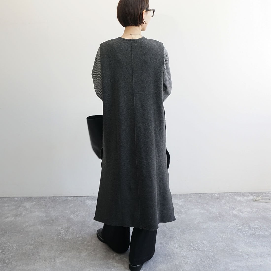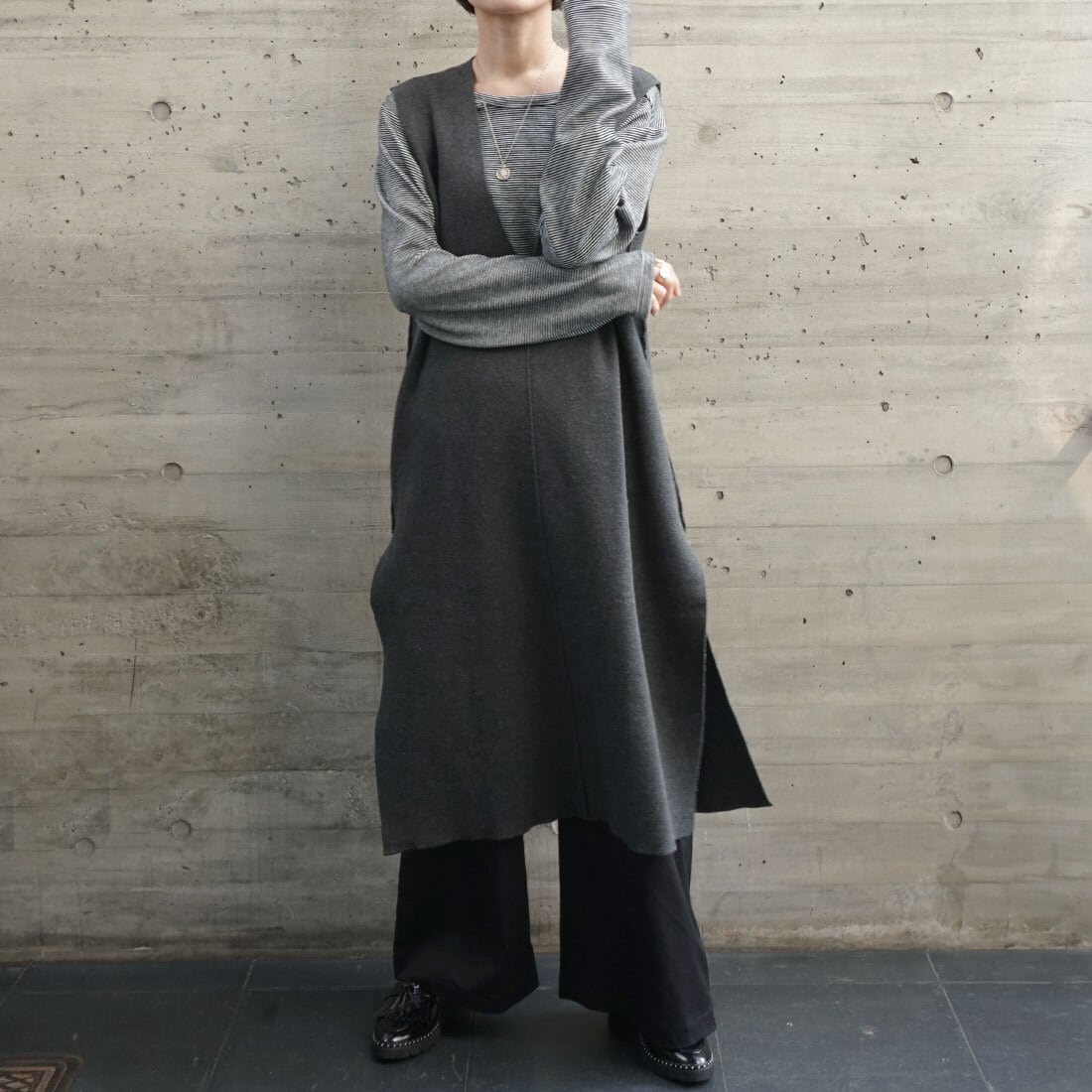 ロング丈のニットベストです。