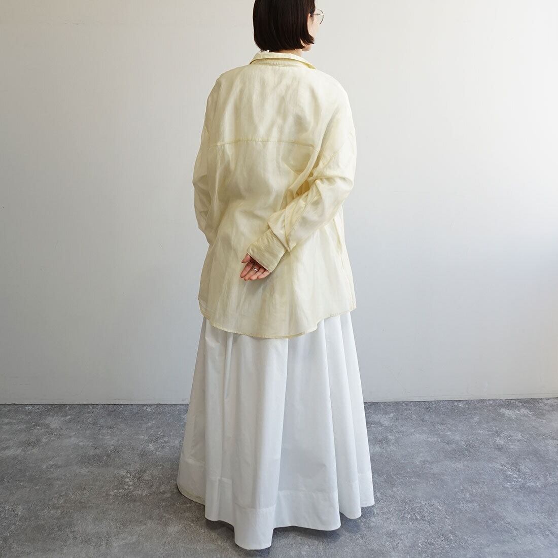 落ち感のある素材で広がりすぎず、