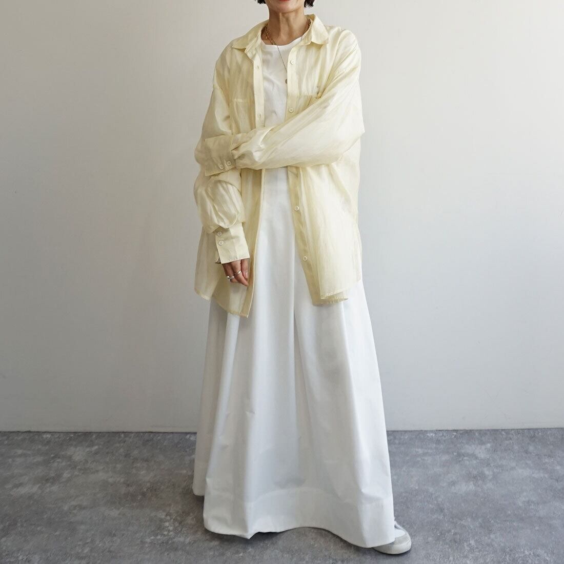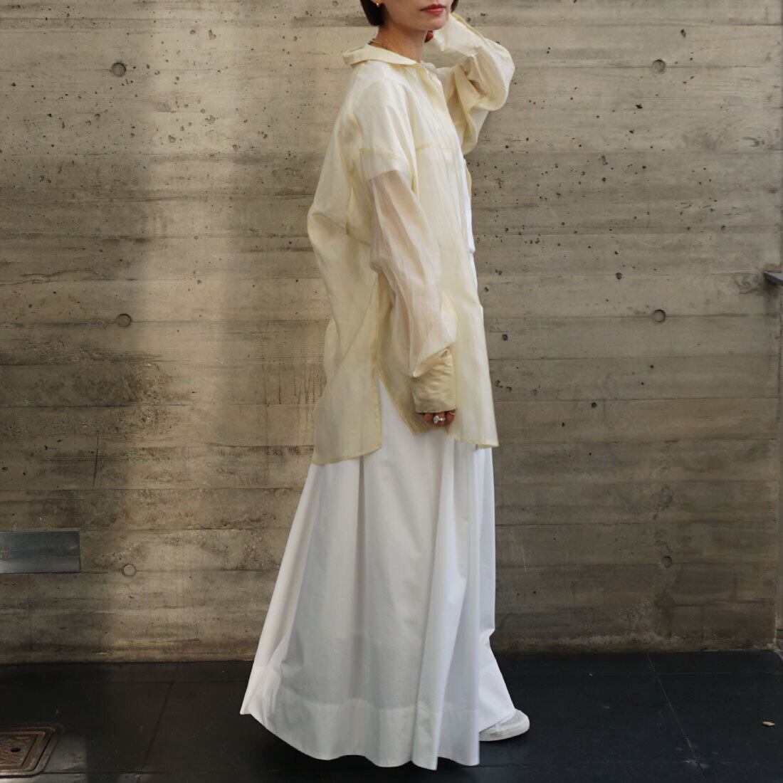 ストンと縦ラインを強調するシャープなシルエットに。