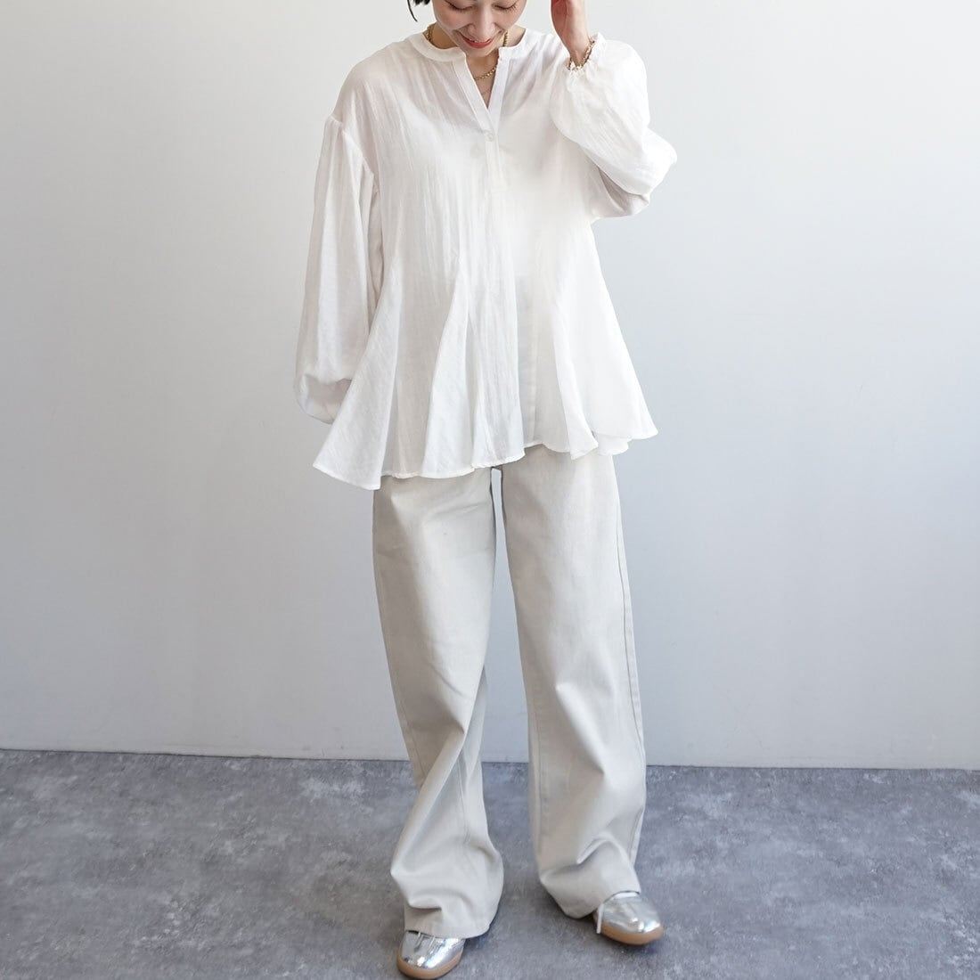 袖口にはぽわんとしたギャザーを施し、