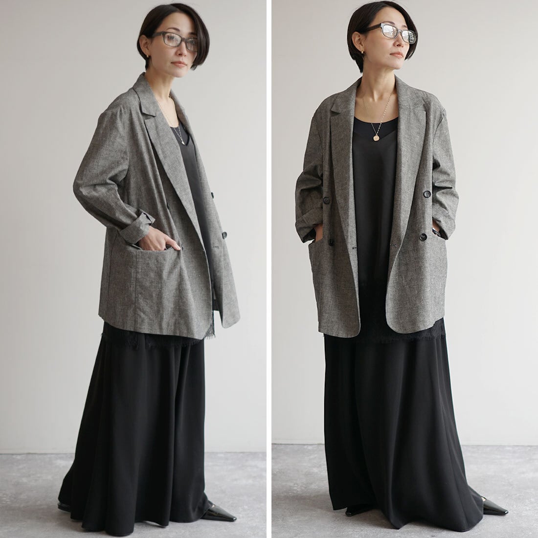 肩の力を抜いて着られるのに、