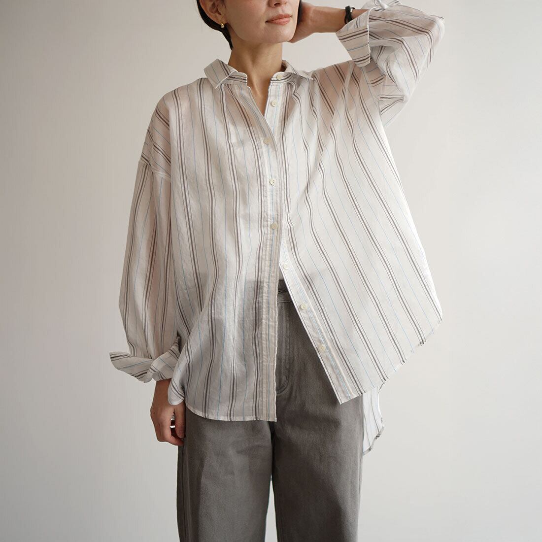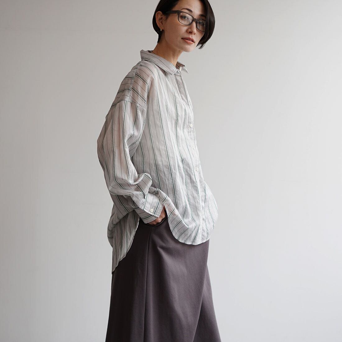軽やかな素材を使用したストライプシャツ。
