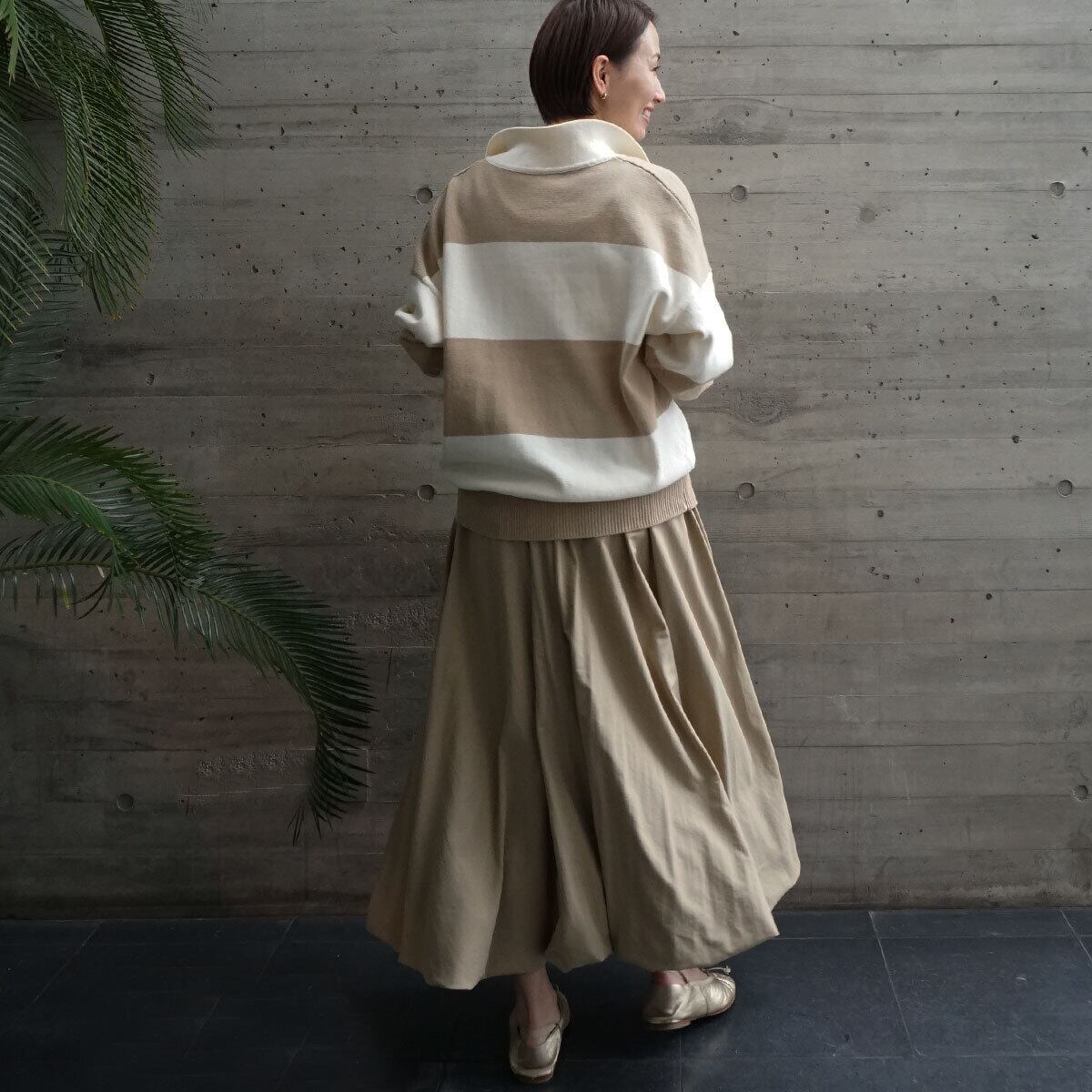 ドロップショルダー+ゆったりサイズ感で