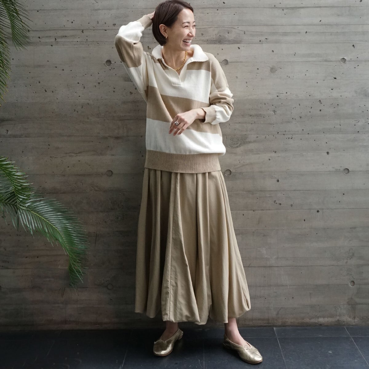 カジュアルながら女性らしい印象に