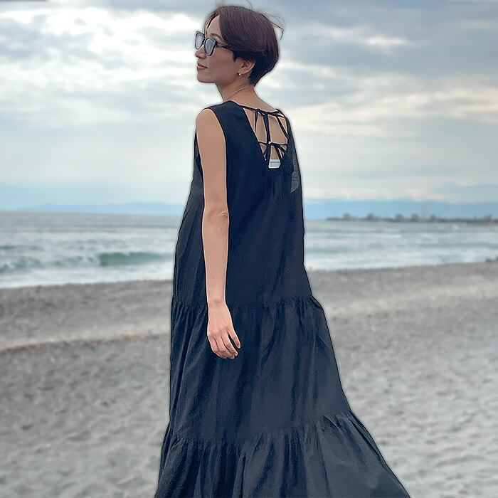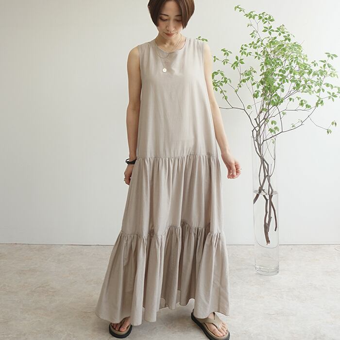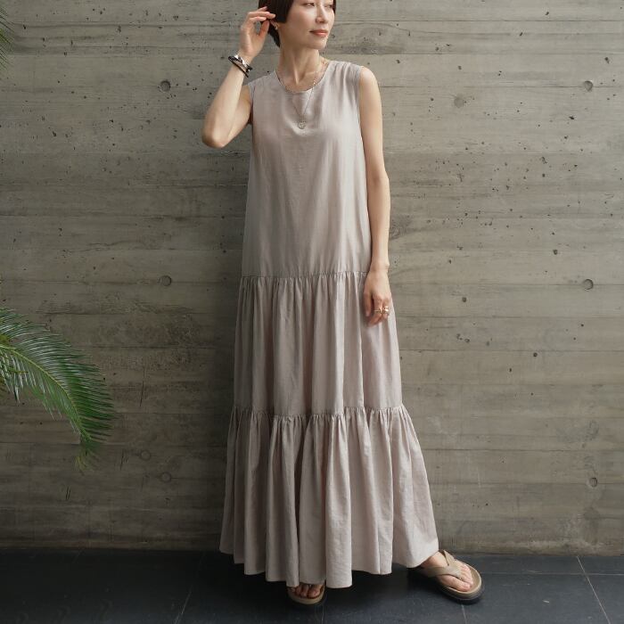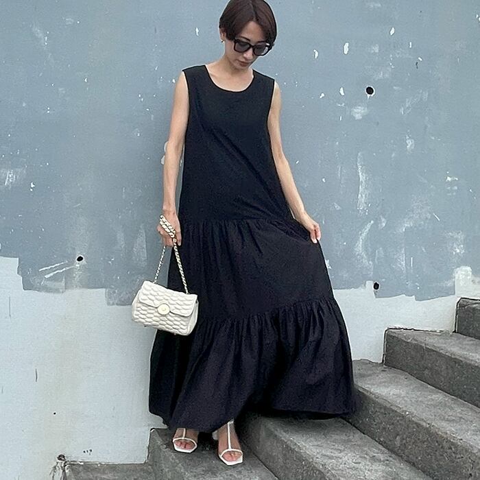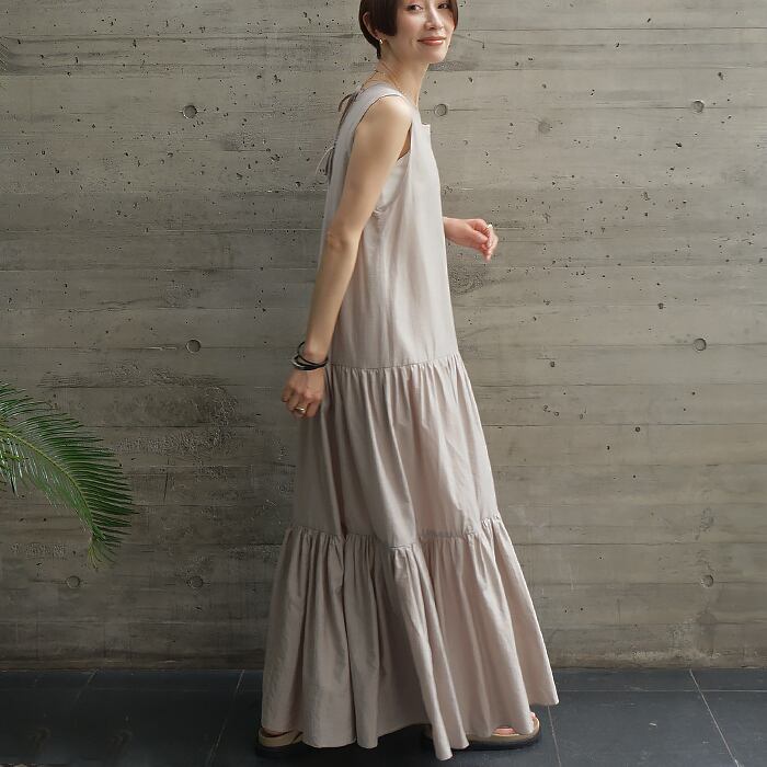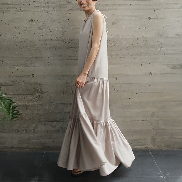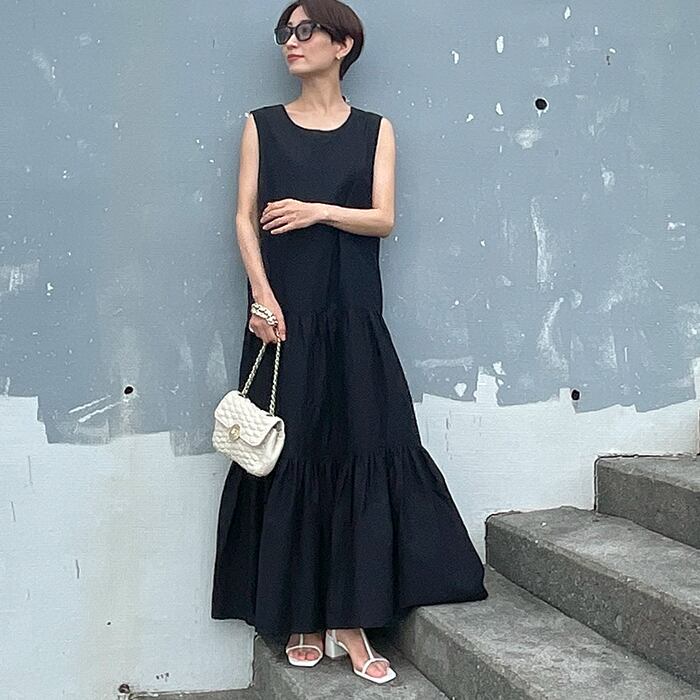 裾にたっぷりとボリュームをもたせたティアードワンピース
