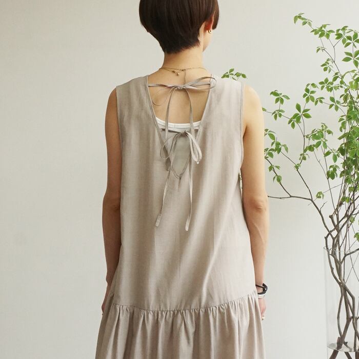 やや透け感のあるリネン混素材の生地でさらっとドライなタッチ