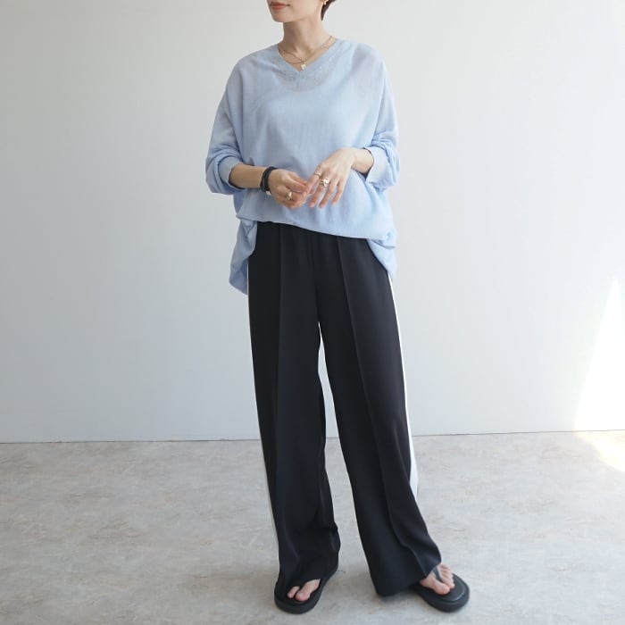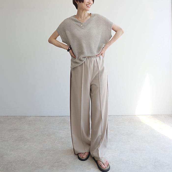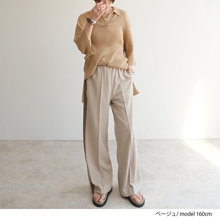 脇ラインはあえて異素材ニット地を使用し上質感もプラス