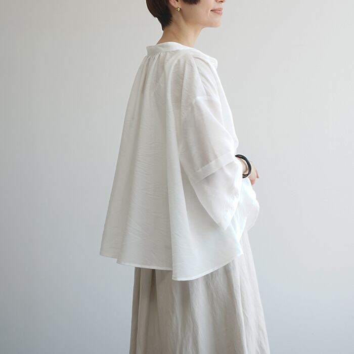 ギャザーが入ったショルダーラインは柔らかく肩に沿うシルエット