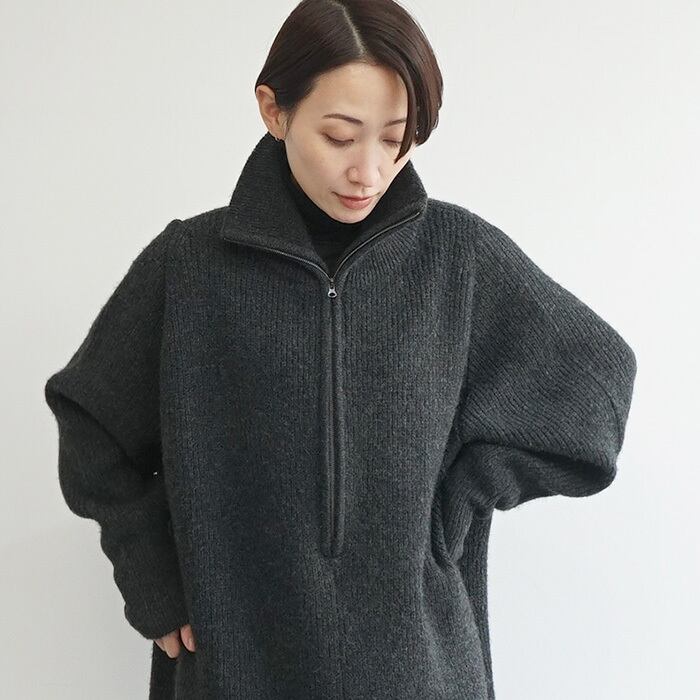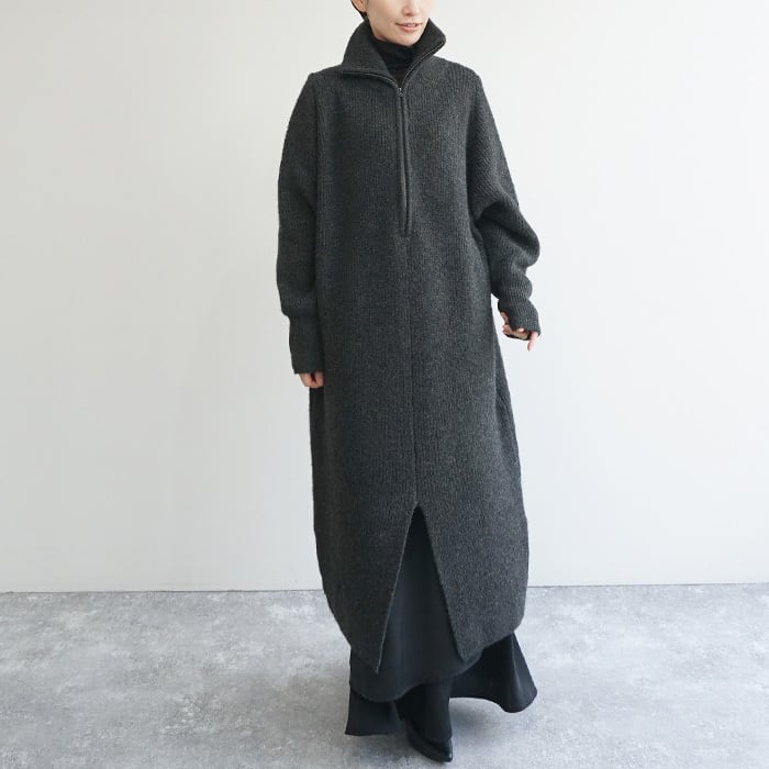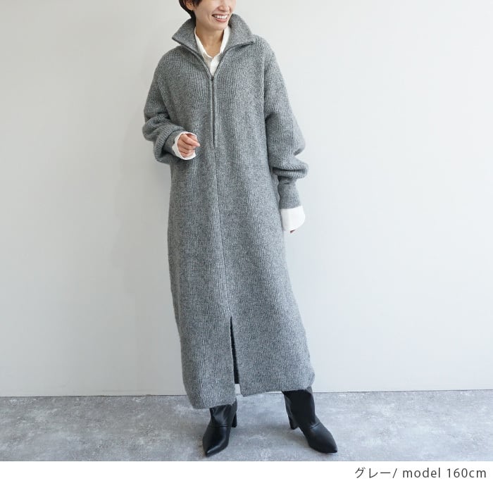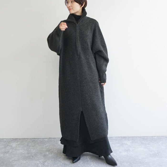 「ハーフジップニットワンピ」