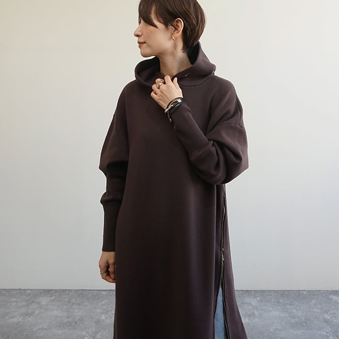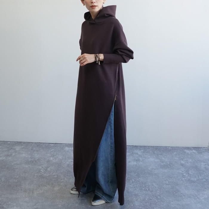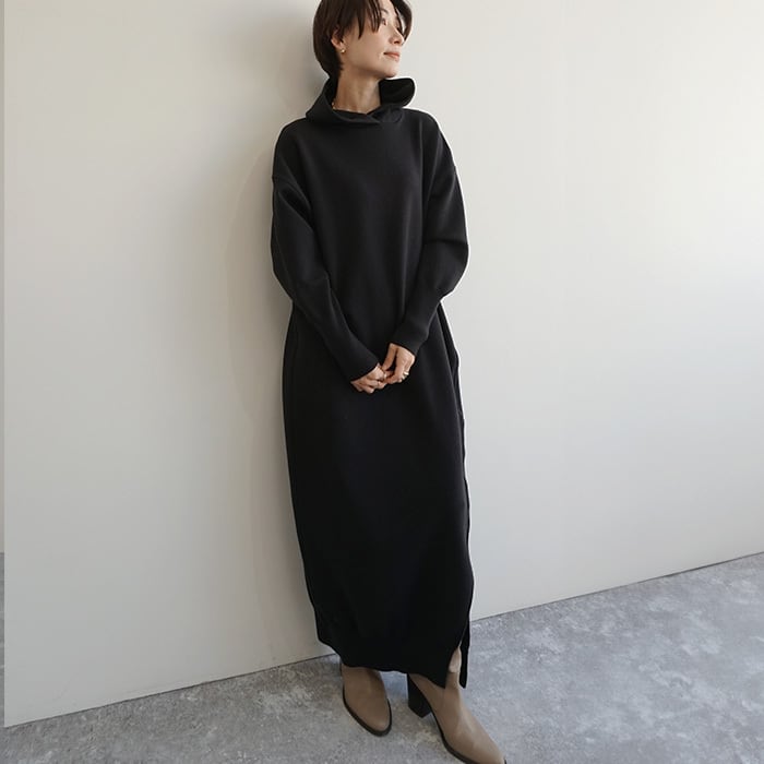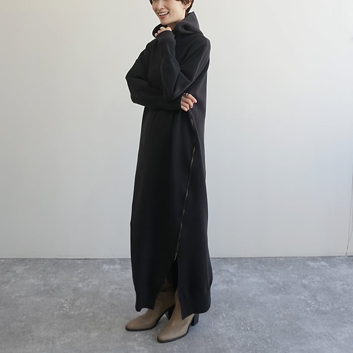すっきりとしたワンピーススタイルに(裾から30cmは閉まらないスリット仕様)